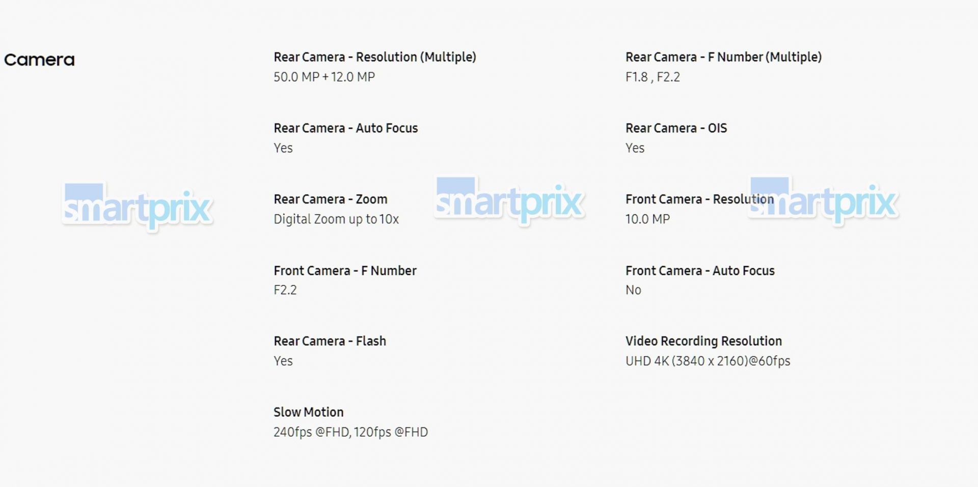 - Caméra selfie : 10Mpx avec une ouverture de f/2.2.