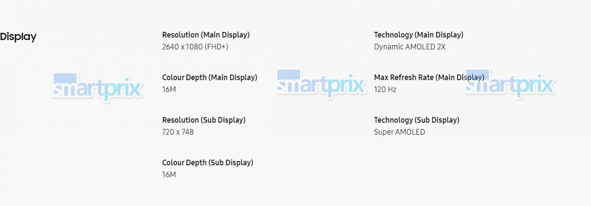 - Écran interne : 6,7 pouces Dynamic AMOLED 2X avec une résolution de 1080 × 2640 pixels et une fréquence de rafraîchissement de 120 Hz.