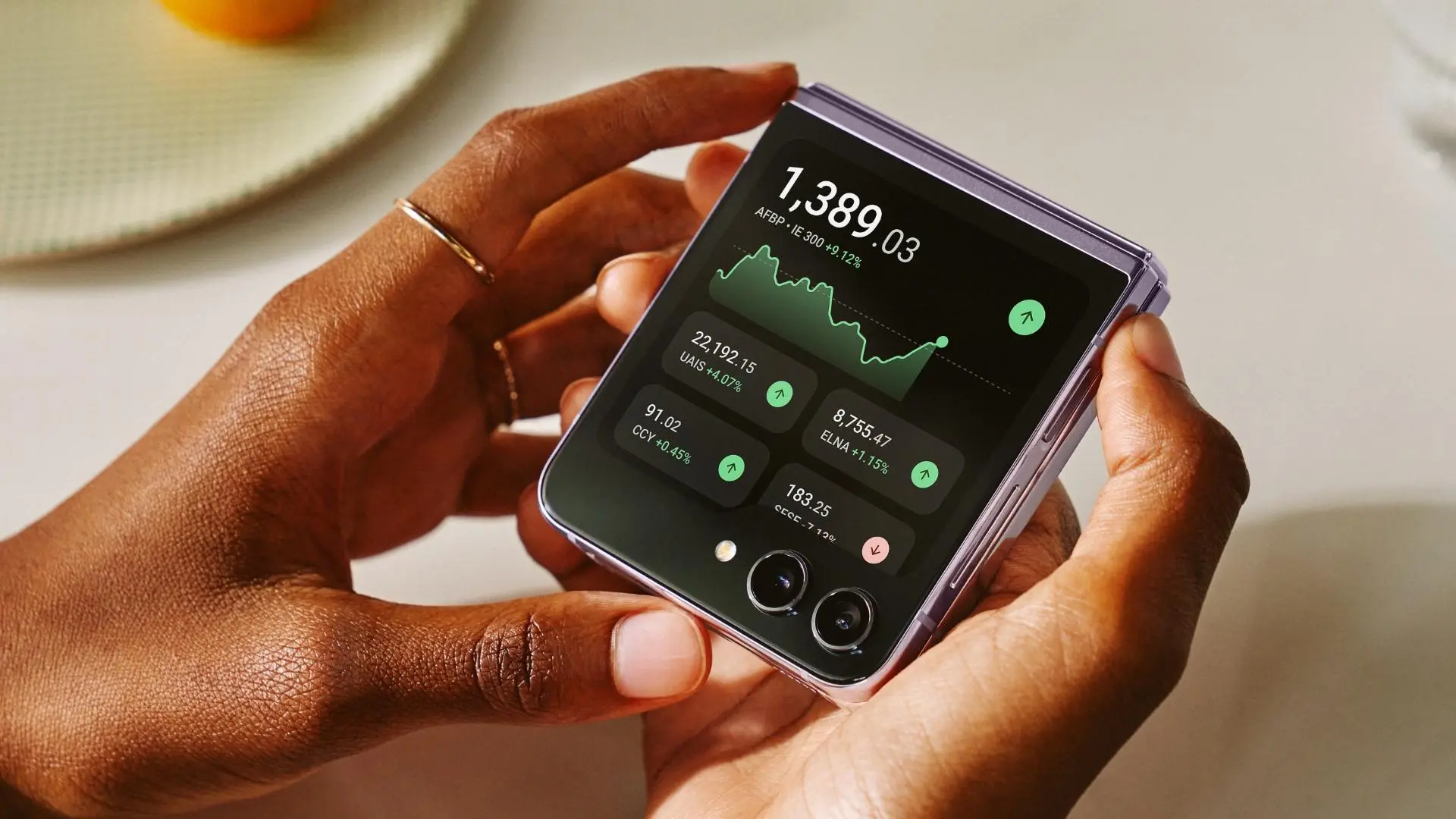Les dimensions demeurent presque identiques – 85,1 × 71,9 × 14,9 mm en fermé et 165,1 × 71,9 × 6,9 mm en ouvert. La seule variation notable par rapport à l’année précédente serait une légère diminution de l’épaisseur en mode fermé (de 0,2 mm), réalisée en réduisant l’espace entre les deux panneaux de l’écran. Le poids reste constant à 187 grammes, avec une amélioration de la résistance à l’eau.