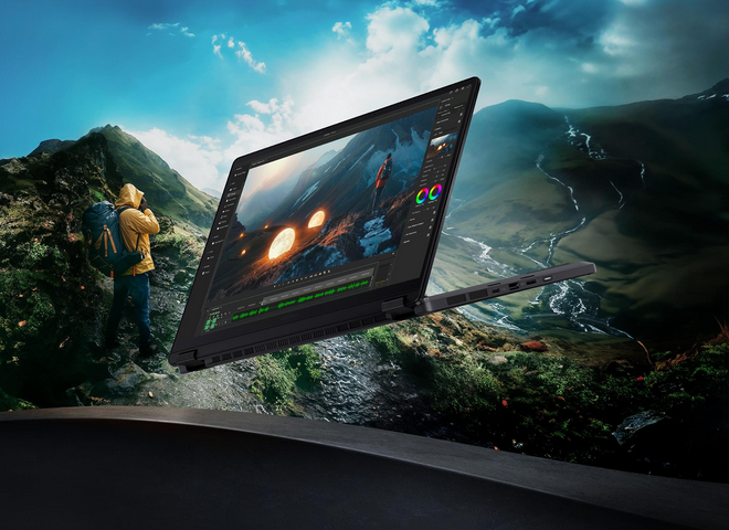 Ensuite, l’ASUS ProArt PX13, qui est un convertible pour ceux qui recherchent un appareil plus petit et plus pratique à transporter. Le processeur et la carte graphique sont les mêmes que ceux du modèle P16, mais l’écran est naturellement plus petit, mesurant 13 pouces. Il offre la même résolution et est également tactile, pratique pour son utilisation en mode tablette. Les chiffres de stockage n’ont pas été divulgués, mais la RAM pour cet appareil peut aller jusqu’à 32GB.