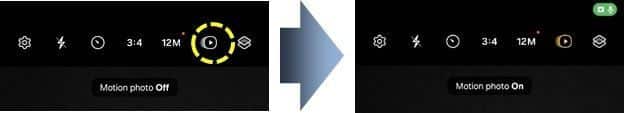 L’activation de cette fonction est simplifiée pour l’utilisateur. Il suffit d’accéder au mode Photo de l’appareil photo, de sélectionner Paramètres rapides et d’appuyer sur l’icône Photos en Mouvement pour l’activer.