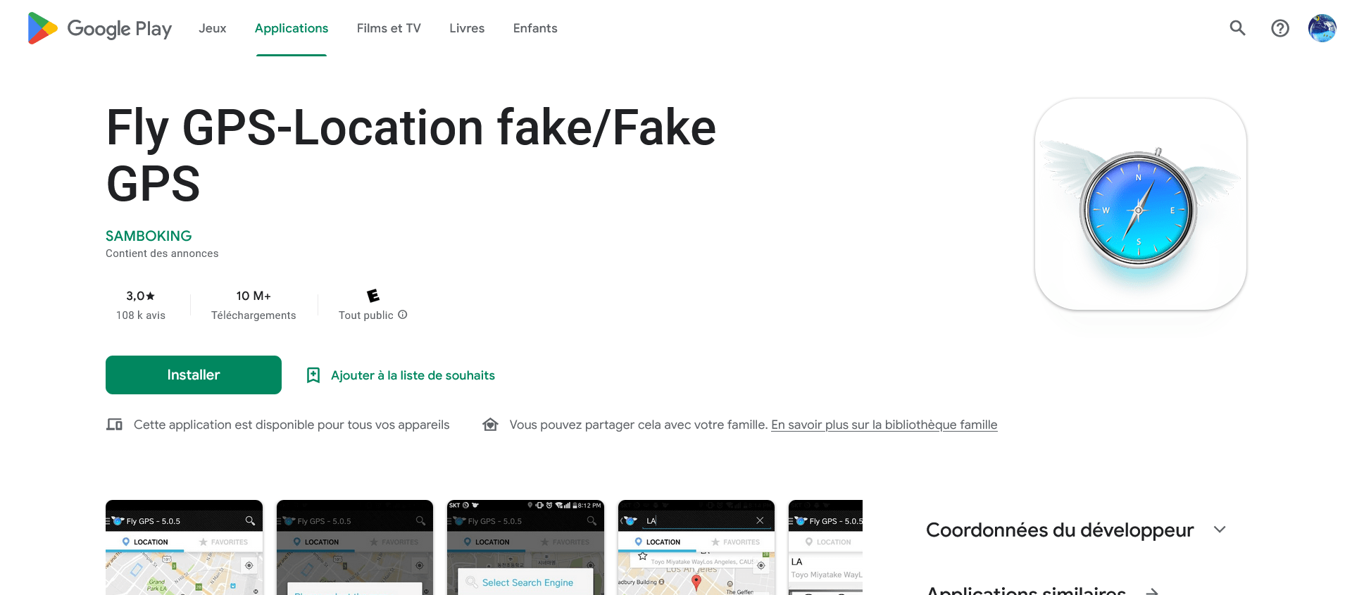 - Fake Location – Joystick&Route: L’application créée par Lerist.dev offre une fonctionnalité de joystick qui permet de modifier la route de votre localisation GPS. Elle a une note moyenne de 2,9 étoiles.