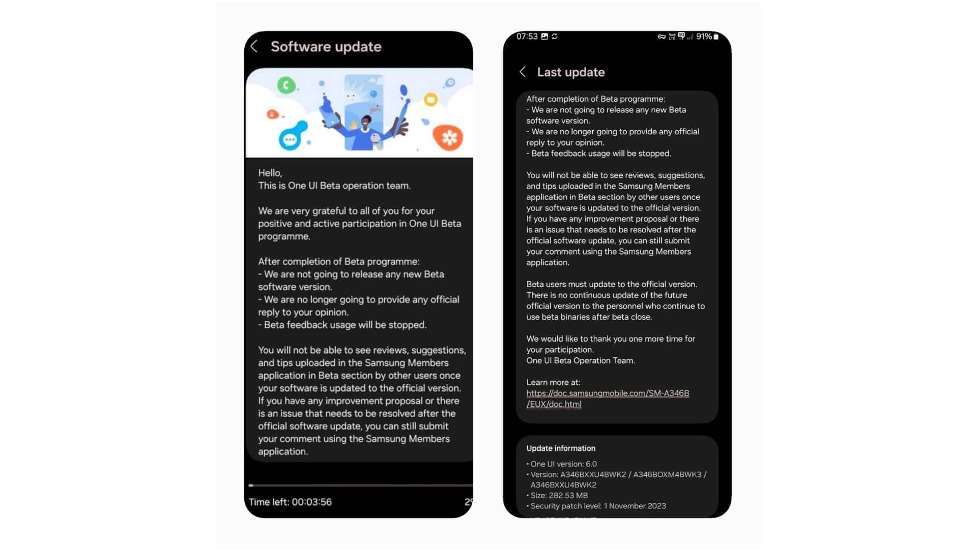 La version stable One UI 6.0 pour le Galaxy A34 5G est déployée avec la version de baseband A346BXXU4BWK2. À l’heure actuelle, cette mise à jour est exclusivement disponible pour les testeurs bêta au Royaume-Uni, avec l’inclusion des correctifs de sécurité de novembre 2023. On s’attend à ce que la disponibilité de la mise à jour s’élargisse progressivement, permettant à davantage d’utilisateurs d’accéder à One UI 6.0 dans les jours à venir.