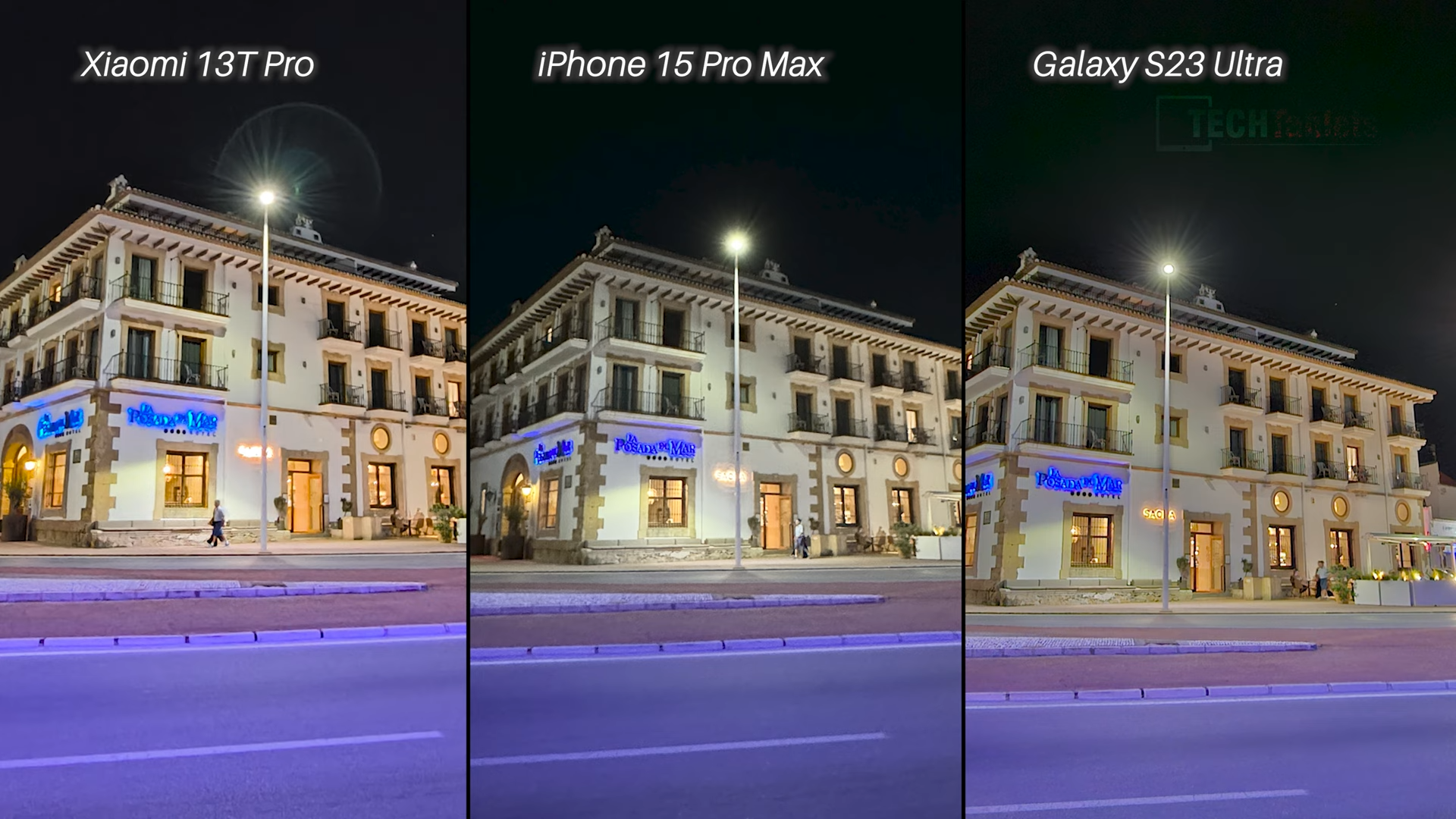 Le Galaxy S23 Ultra semble offrir les meilleures performances en vidéo en basse lumière, tandis que l’iPhone présente des problèmes de flare. Le Xiaomi 13T Pro et le Galaxy S23 Ultra sont au coude à coude pour les photos en basse lumière.