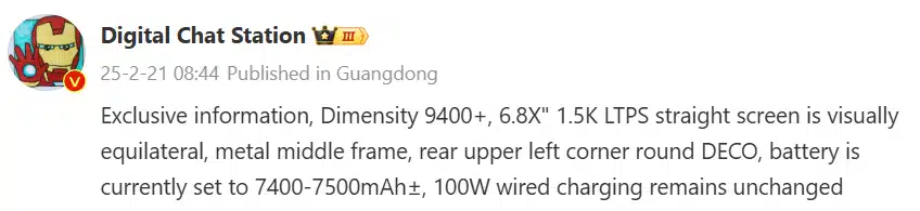 Sous le capot, on retrouvera le MediaTek Dimensity 9400 Plus, un processeur conçu pour rivaliser avec les meilleures puces du marché. Ce choix confirme que le smartphone arrivera bien sous l’appellation Xiaomi 15T Pro, la gamme T utilisant traditionnellement des chipsets MediaTek.