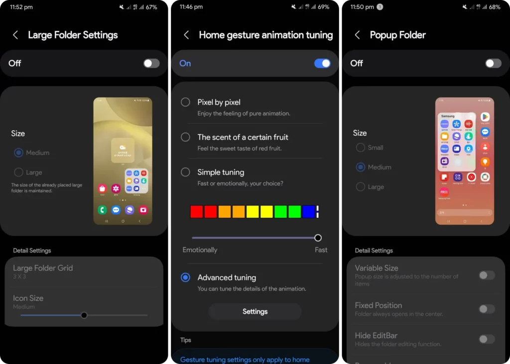 Le module Home Up de One UI 7 propose plusieurs outils pour personnaliser les animations et optimiser l’interactivité.