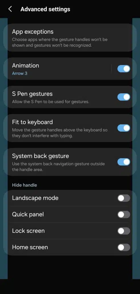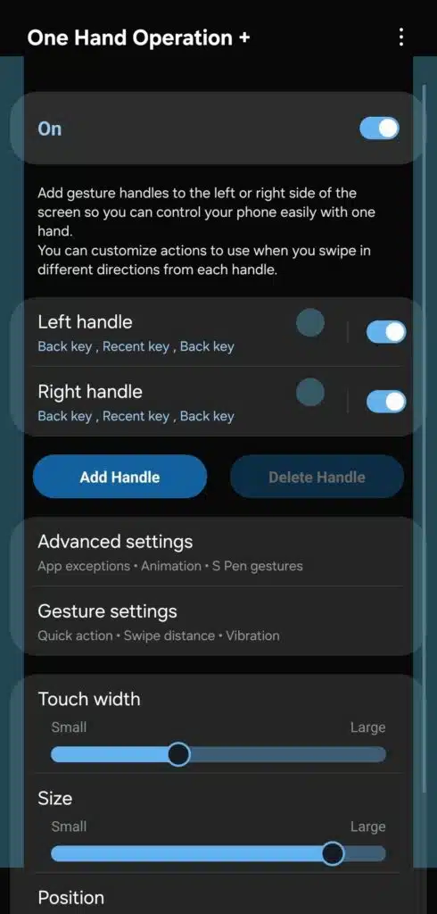 Jusqu’à présent, la gestion des “handles”, ces zones tactiles configurables placées sur les bords de l’écran, demandait plusieurs manipulations dans les menus de configuration.