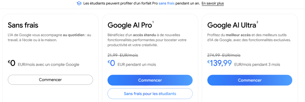 Pour ceux qui souhaitent aller plus loin, Google propose deux formules payantes : Google AI Pro et Google AI Ultra, avec des capacités largement étendues.