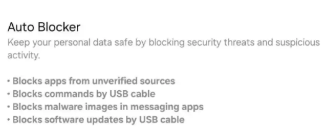 En plus de bloquer le sideloading, l’Auto Blocker intègre d’autres fonctionnalités de sécurité pour protéger les données et les appareils des utilisateurs :