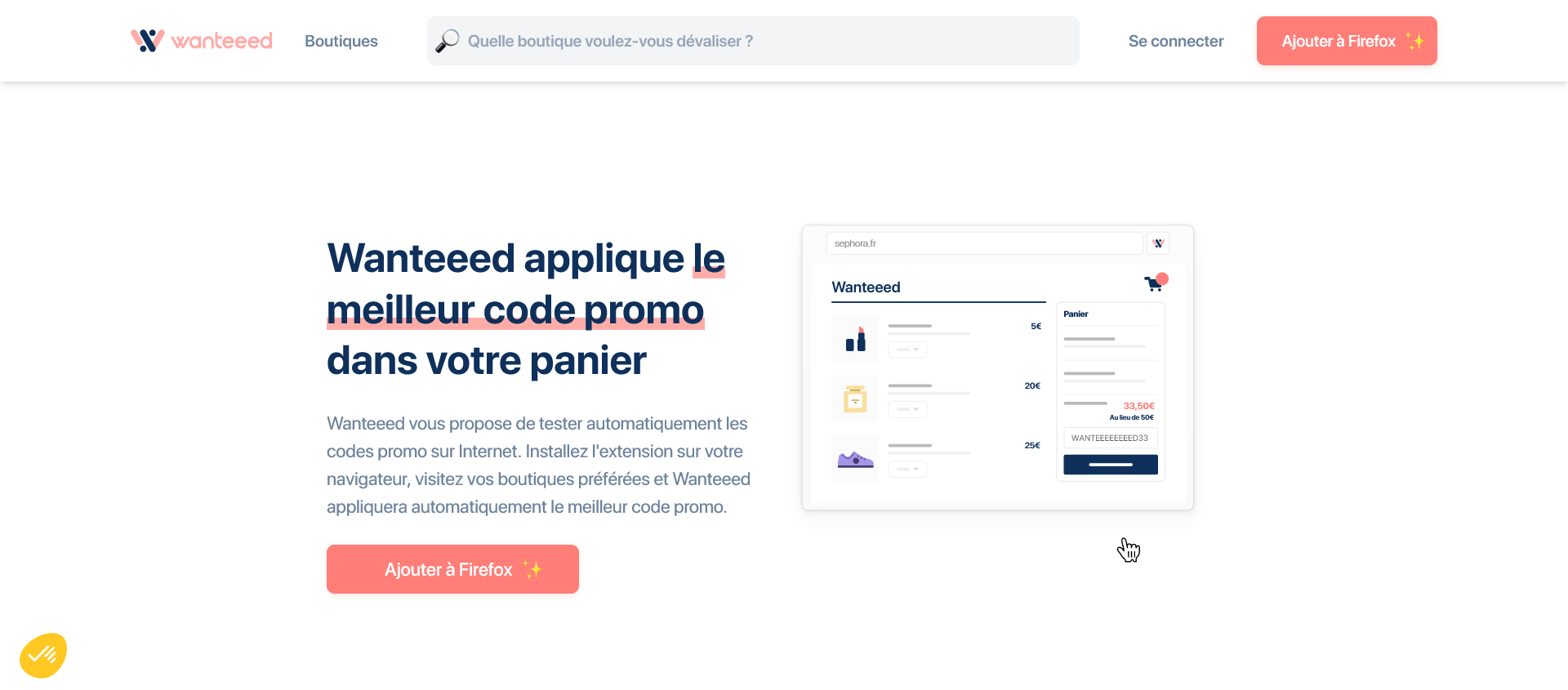 - Wanteed cherche les codes promos : Wanteed parcourt sa vaste base de données de codes promos et les applique automatiquement à votre panier.
