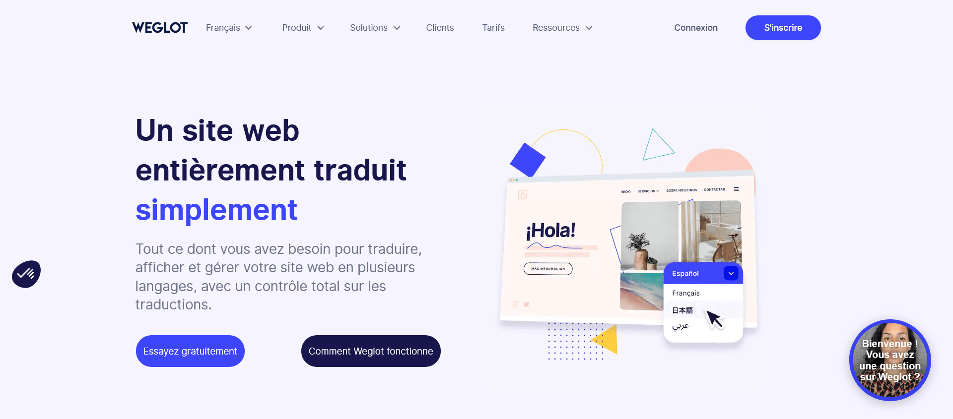 Weglot se présente comme une solution idéale pour publier votre site web en plusieurs langues, améliorant ainsi l’expérience des visiteurs internationaux et augmentant significativement le trafic de votre site et sa visibilité sur les moteurs de recherche. Cette plateforme de traduction hébergée vous permet de convertir votre contenu dans plus d’une centaine de langues.