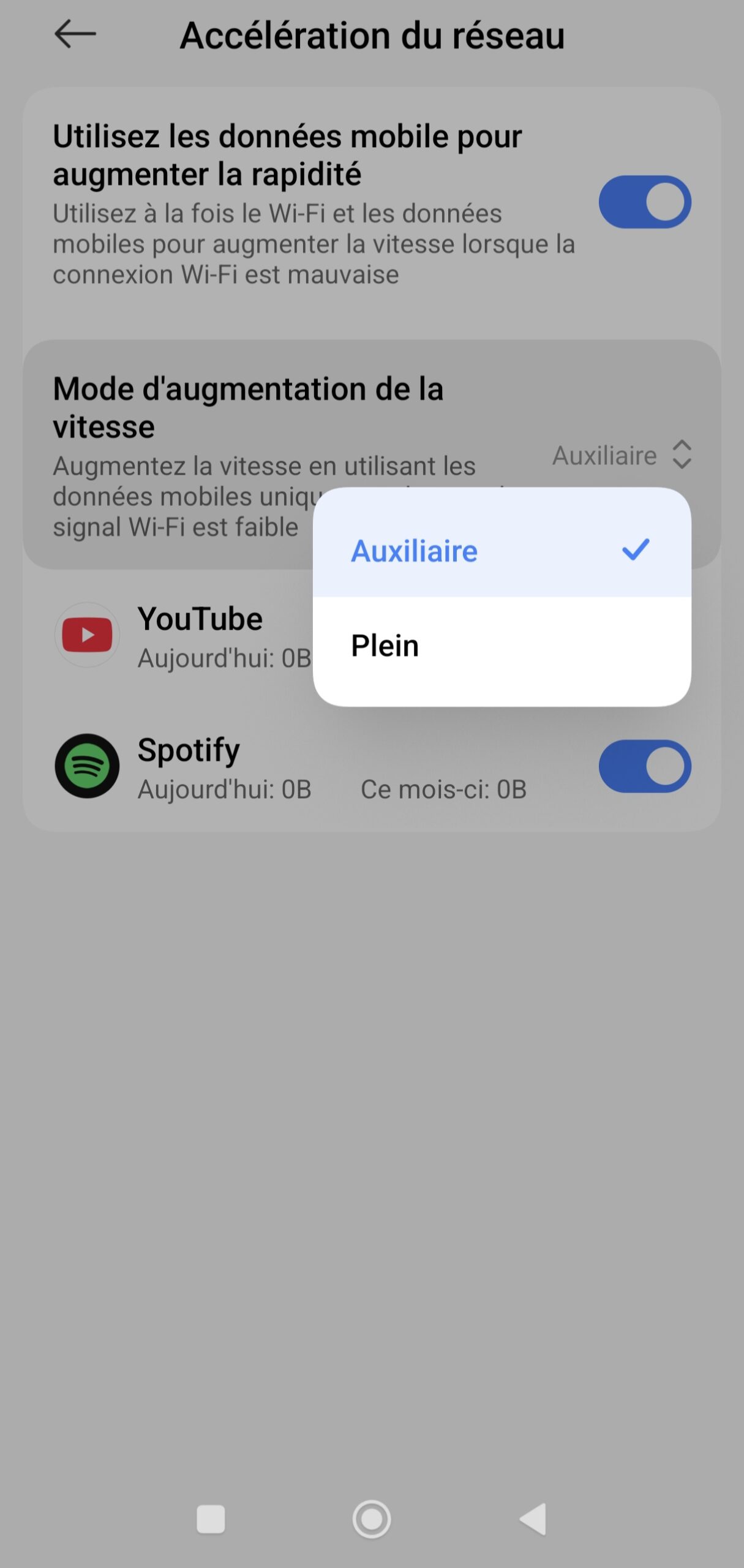 - Activez “Utiliser les données mobiles pour augmenter la rapidité”