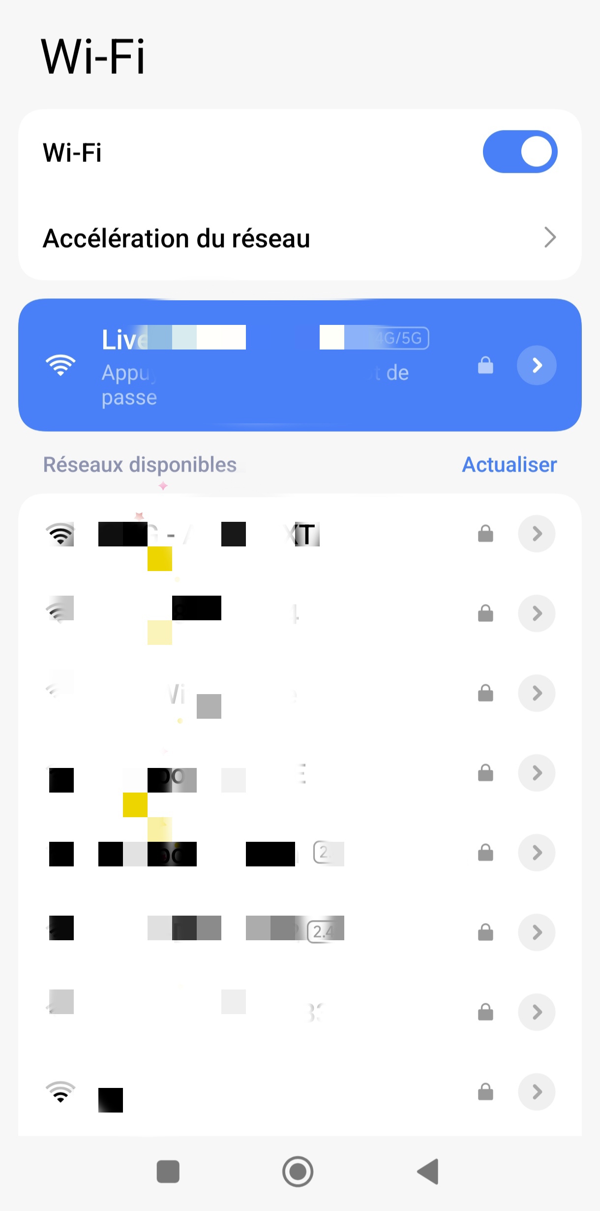 L’option s’appelle “Accélération du réseau”. Elle permet d’utiliser à la fois le Wi-Fi et les données mobiles pour offrir une connexion plus fluide. Voici comment l’activer :